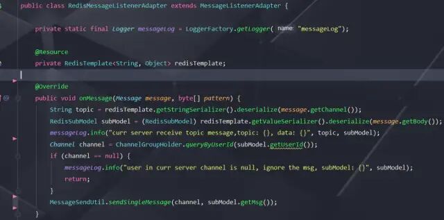 监听器实现,监听的频道收到消息,处理并发送到对应Channel