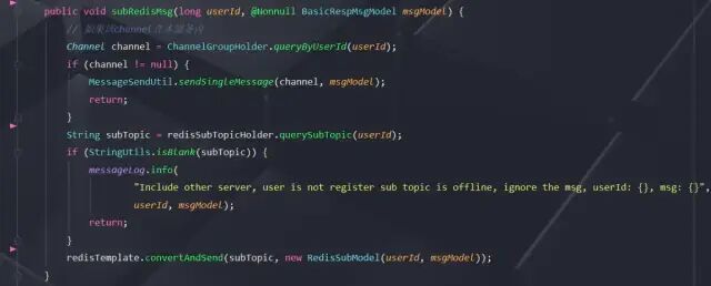 ③在Channel转发时,判断如果当前用户在本节点,就直接转发,如果不在,从Redis获取到注册的节点信息,并将消息发布到指定的频道节点。