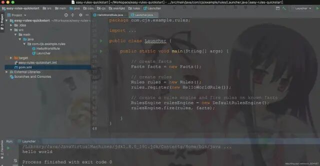 @Rule(name = "Hello World rule", description = "Always say hello world")