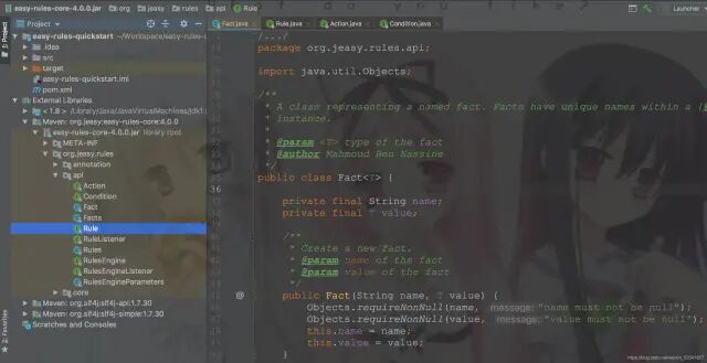 Easy Rules它提供Rule抽象以创建具有条件和动作的规则,并提供RuleEngine API,该API通过一组规则运行以评估条件并执行动作。
