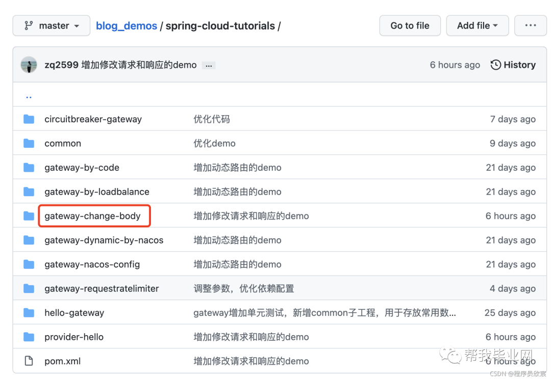 spring-cloud-tutorials文件夹下有多个子工程,本篇的代码是gateway-change-body,如下图红框所示: