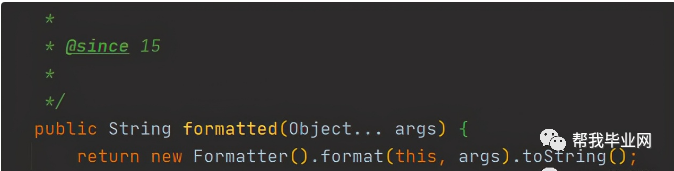 Java 15 之前格式化字符串中的参数需要使用 String.format 静态方法,感觉不是很方便,而在 Java 15 中新增了直接格式化字符串的方法: